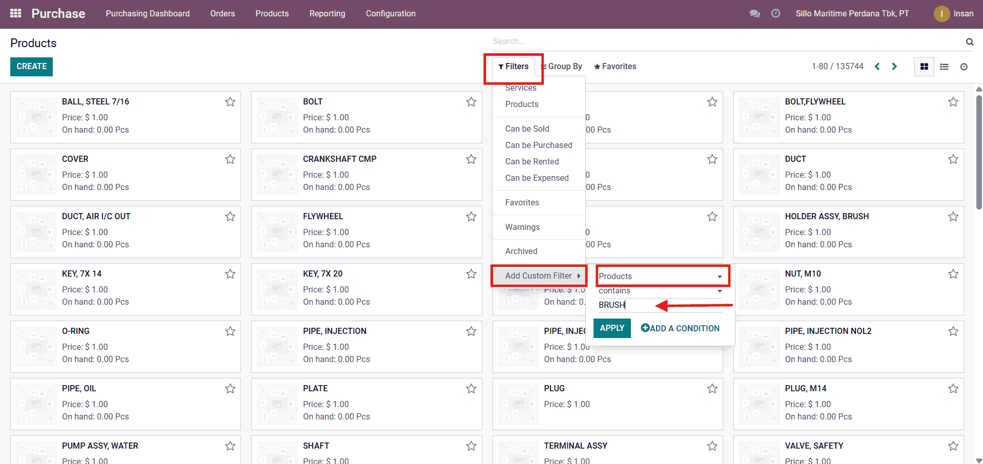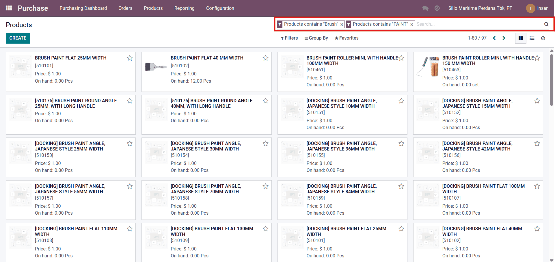 Contoh Mencari Product Filter by Name/Products: Paint dan Brush