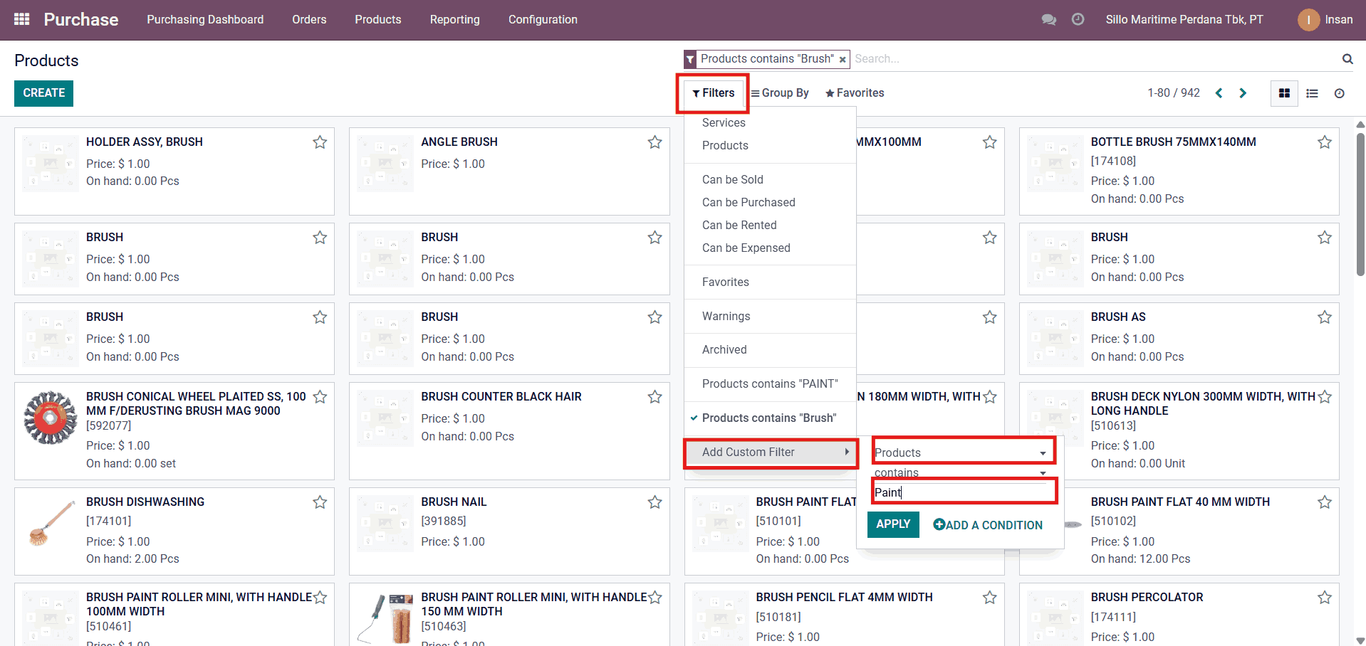 Contoh Mencari Product Filter by Name/Products: Paint dan Brush